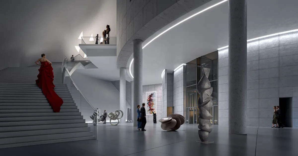 وسيضم المبنى المكون من خمسة طوابق مساحات عرض مرنة في الطابقين الأول والثاني، ومطعماً على الواجهة البحرية في الطابق السفلي، وصالة لكبار الشخصيات في الطابق الثالث، إلى جانب مرافق إضافية في الطابق الأرضي والسفلي.