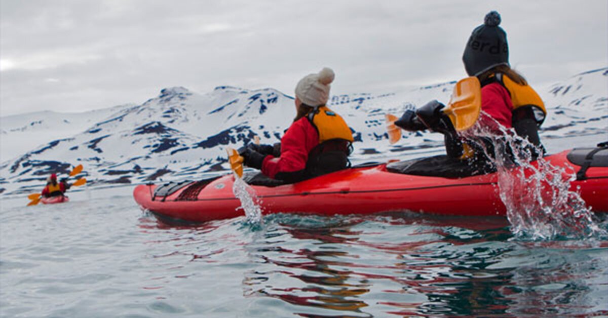 تعتبر جولات التجديف بالكاياك من مغامرات جي في المياه القطبية المتجمدة عندما تقوم بالتوقيع على نموذج التنازل عن المسؤولية قبل التجديف بالكاياك في البحر في سفالبارد يذكر الدببة القطبية وفقمات النمر فأنت تعلم أن هناك مغامرة تنتظرك. هذه الرحلة ليست لأصحاب القلوب الضعيفة وأنت بحاجة إلى أن تكون لائقًا بدنيًا ولكن إذا تمكنت من وضع علامة في كل المربعات فستنتظر مغامرة لا تُنسى. كما يأخذ المرشدون زوارق الكاياك إلى الخلجان والمضايق المحمية للحصول على مناظر مختلفة لعظمة المنطقة والاقتراب من الحياة البرية. كما يجب حجز برنامج قوارب الكاياك المتاح لعشرة أشخاص كحد أقصى في القطب الشمالي 20 في أنتاركتيكا مسبقًا.