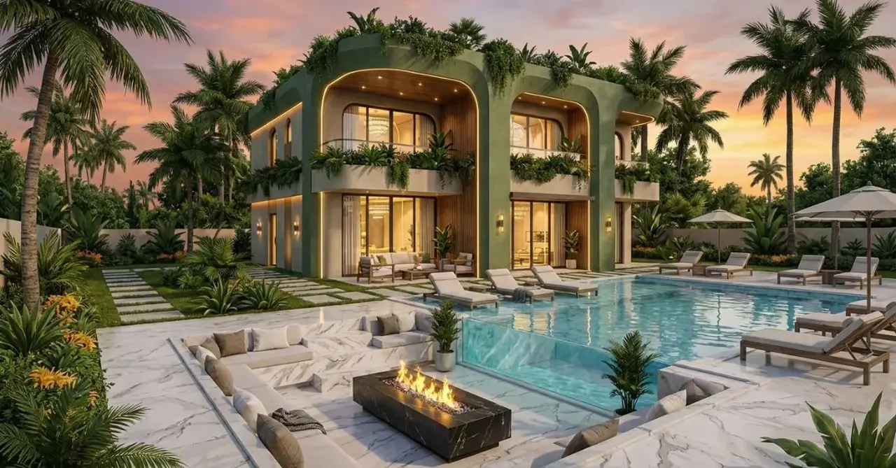 ستضم المساكن أكثر من 50 فيلا مخدومة، مع مسابح وحدائق خاصة، مدمجة في بيئة على طراز المنتجع مع إمكانية الوصول المشترك إلى مرافق الضيافة.